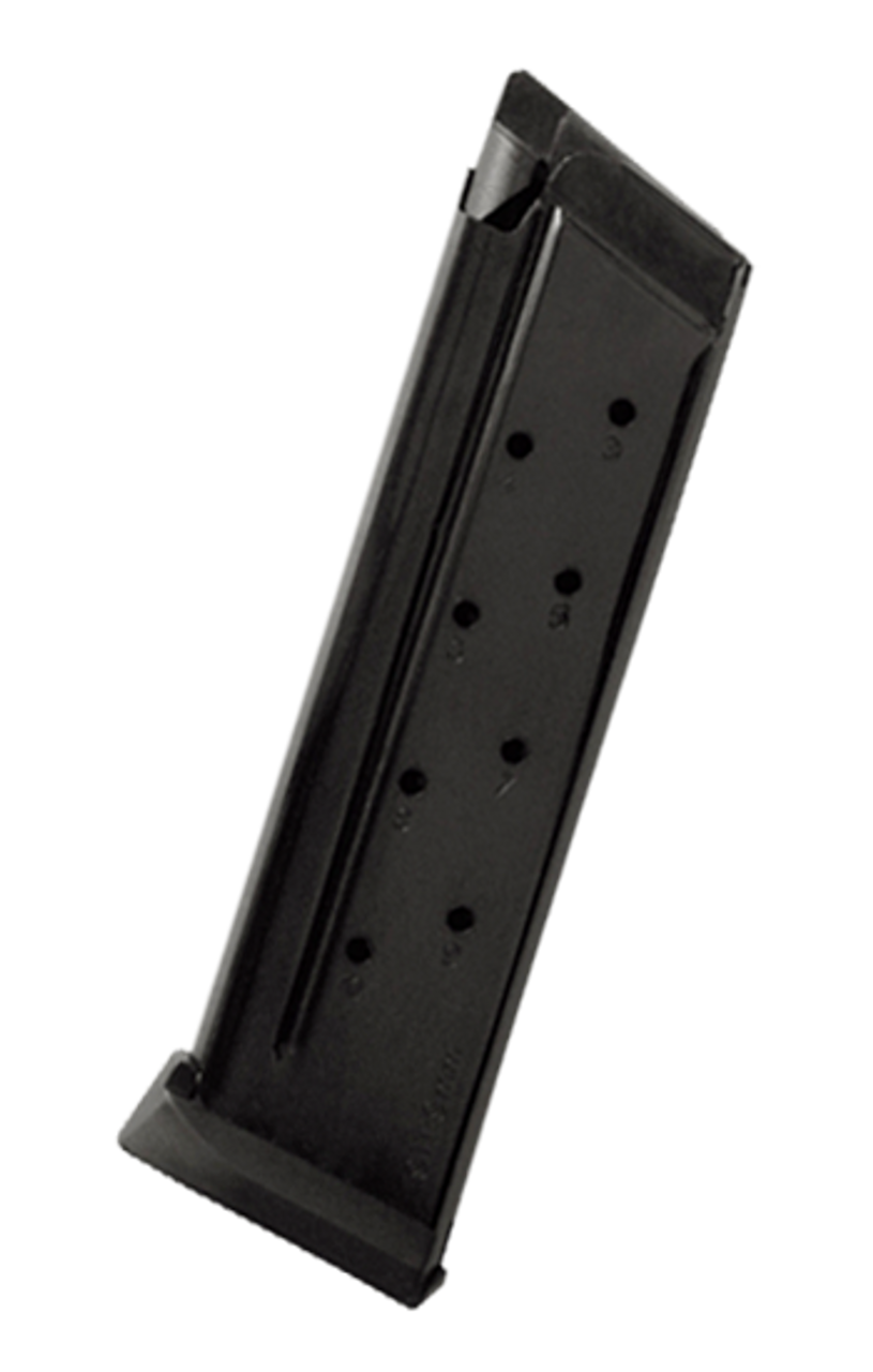 The Rock Island Armory A-1 1911 Full Size Magazine is a standard factory replacement magazine. This magazine is for A-1 1911 models chambered in 9 mm and holds 10 rounds of ammunition. It is made of steel and is made to Armscor/Rock Island Armory specifications and tolerances, using the same manufacturing and materials as the original equipment magazines, ensuring perfect fit and operation.