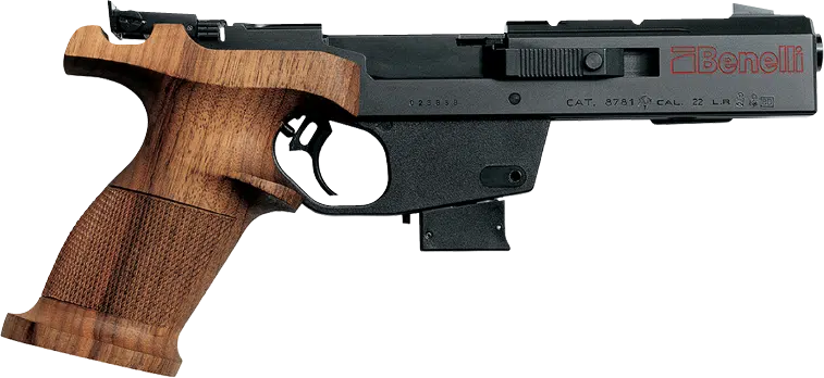 Offered in 32 W.C. and 22 L.R. gauges, Benelli’s MP 95E pistol is a highly stable precision target shooting pistol. The bolt unit is characterised by a particularly wide ejection aperture that helps increase the gun’s reliability. Comes with rails for mounting a scope or electronic sight.
