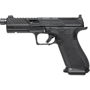 The 2.61 lb./1185g SFx Rival-S, is 8.09”/205.5mm long, with a 5”/127mm barrel length, is 1.41”/36mm wide, and has a height of 5.75”/145mm. The SFx RIVAL-S is chambered in 9x19mm, and with the additional weight and aluminum 90° break flat trigger, is sure to decrease recoil and improve split times and accuracy! Simply put, the SFx RIVAL-S is “FORGED FOR SUPERIORITY!!”