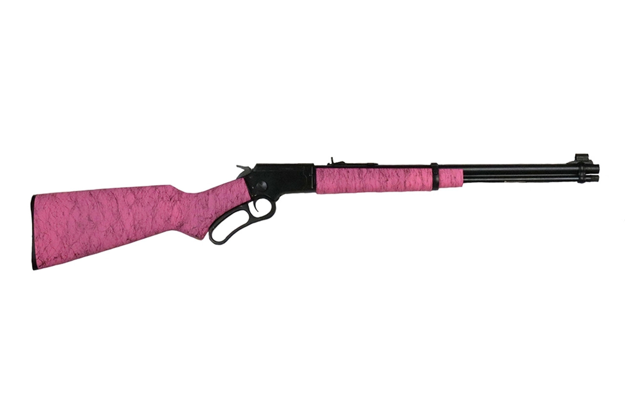 Chiappa’s LA322 is a lever-action rifle chambered in .22LR, and featuring a convenient and easily operated Take-down feature, allowing the rifle to be broken into two separate units. Features pink and black fleck cerakoted stock.