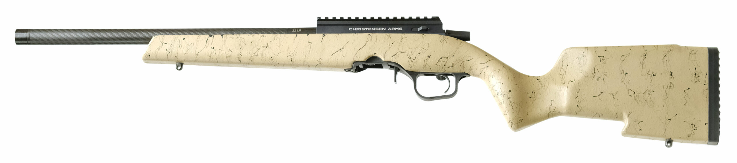 - Stock:Carbon Fiber Composite Rimfire StockPalm SwellAmbidextrous GripRecoil PadFlat ForendSling StudsPalm HookColor