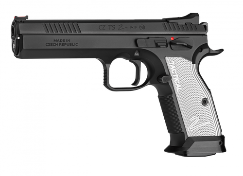 A generational leap forward, this sports special is built to dominate competition in IPSC Standard Division and USPSA, as well as in other target shooting disciplines and hobby target shooting. The TS 2 base model is suitable for beginners and advanced competitors alike. The pistol is equipped with flat, silver anodized duralumin grips, solid metal sights, extended manual safety on the left side and flat manual safety on the right side. A pin for replacement of the slide stop is included as part of the package.