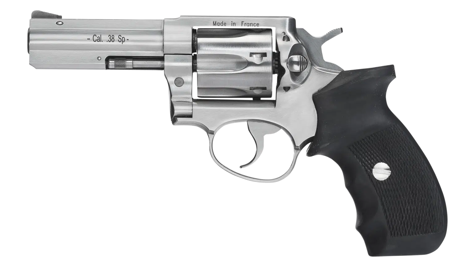 MR88 Sport with adjustable sights in cold, hard stainless steel. The MR88 revolver with double action and trigger guard integral to the frame forging. A six-shot cylinder that swing open to the left for reloading and the adjustable rear sight make the MR88 sport quick and easy to reload and use.
