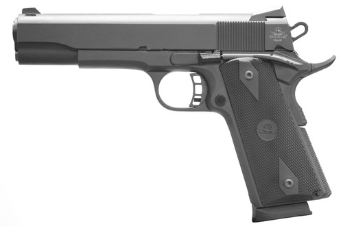 It’s chambered in .45ACP with a 5” button rifled barrel supported by a full length guide rod. Smooth, angled, snag-free style allows for quick draw in fast need situations. Includes a low profile angled rear sight along with skeletonized hammer and trigger with adjustable over travel stop and ambidextrous safety standard in the Rock series. Finished with a tough, parkerzied matte coating and comes with checkered rubber grips. True to all Rock Island 1911s, it comes with a crisp factory 4- to 6-pound trigger, making it a great experience right out of the box