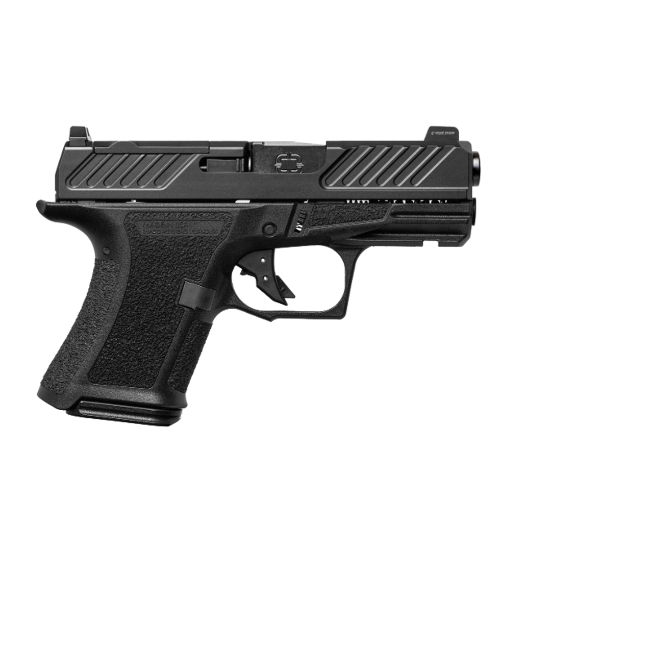 The slide features directional serrations in the front, rear for all models. The Elite model adds directional topside serrations and a weight-optimizing window cut. Steel sights feature a blacked out serrated rear and a bright green tritium front, for easy sight picture. Combat Optic and Elite models come equipped with the patented Shadow Systems multi-footprint optic cut. The optic cut allows direct-to-slide mounting of a variety of micro red dot options from the top brands, including the Shield RMS and Holosun 507k.