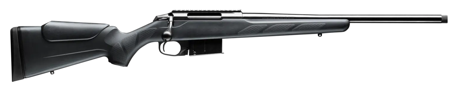 The Compact Tactical Rifle (CTR) is a real multipurpose rifle that is adaptable to a number of different situations. It delivers consistent, high performance irrespective of the environment. Comes standard with a 10-round steel magazine and vertical angled grip for prone shooting. The Tikka T3x CTR also features an aluminium trigger guard where the magazine release lever has been positioned to enable fast magazine change. Its compact size, Picatinny rail, Teflon bolt and semi-heavy barrel contours give the rifle a tactical feel.